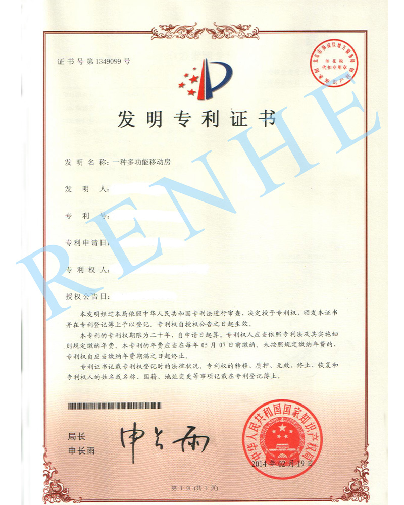 運(yùn)輸方便的活動(dòng)房實(shí)用新型專利證書