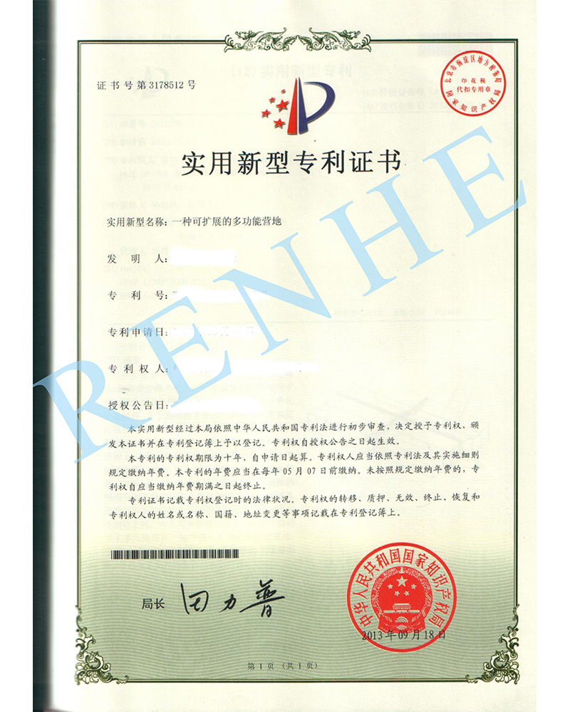一種可擴(kuò)展的多功能營地實(shí)用新型專利證書